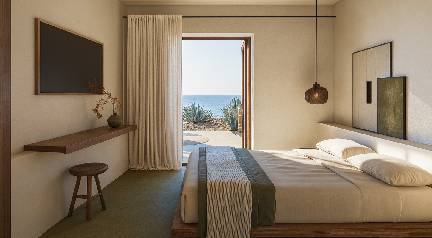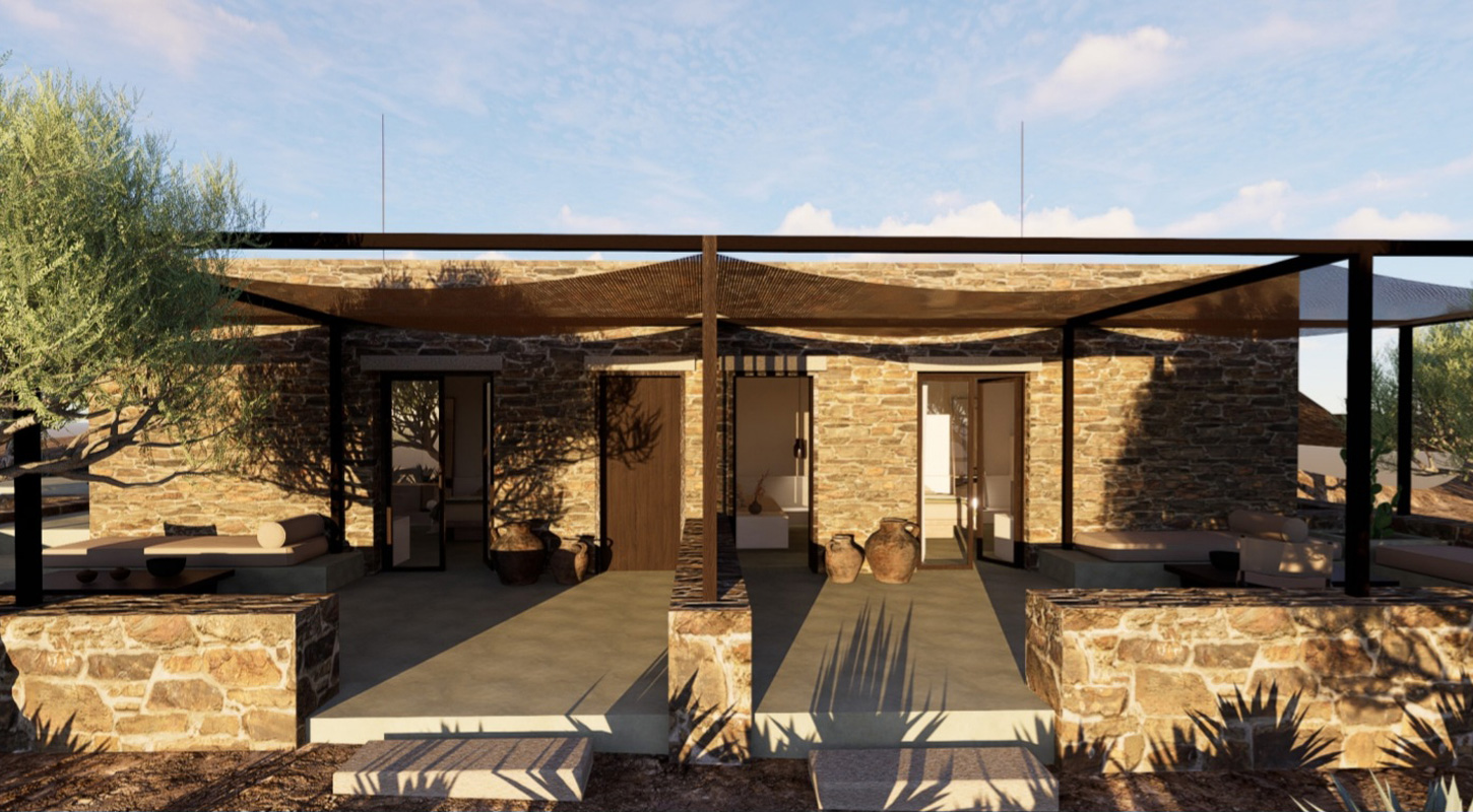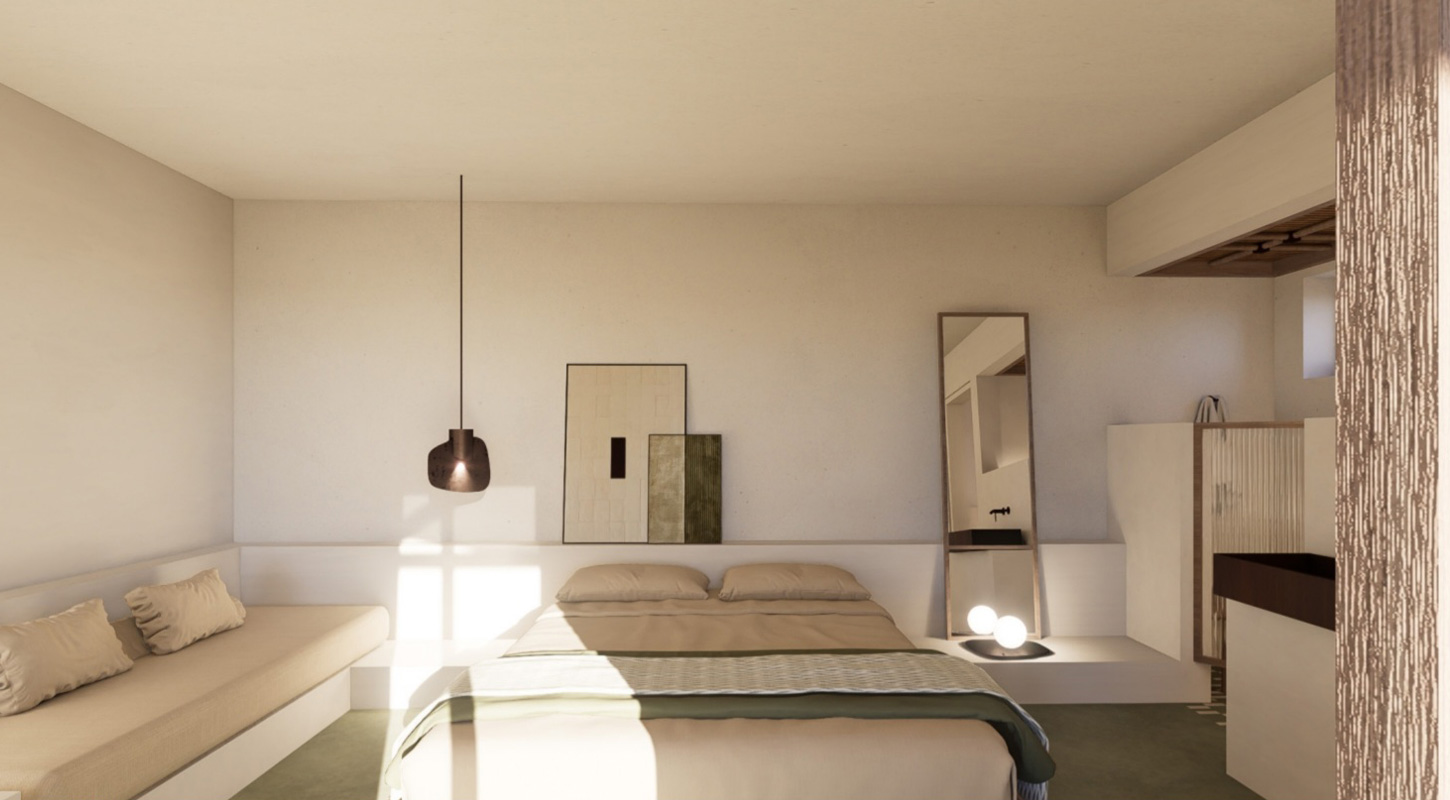 The Deluxe Suite at Faos offers enchanting sea views within a bright, elegant 28m² space designed for total relaxation. It features a terrace perfect for enjoying your coffee or a drink against the backdrop of the endless blue. With its minimal aesthetic and serene ambiance, it is the perfect choice for a romantic getaway or a restful seaside break.